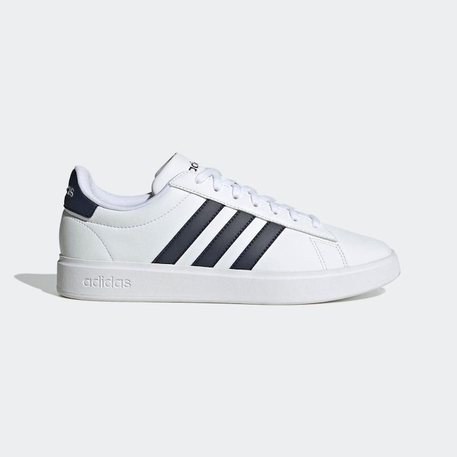 Este tênis adidas Grand Court com as Três Listras clássicas mantém a sua partida inteligente e limpa.