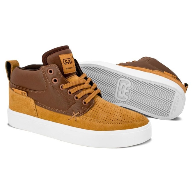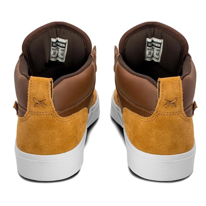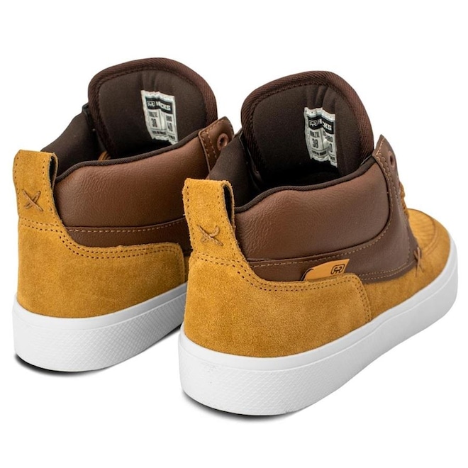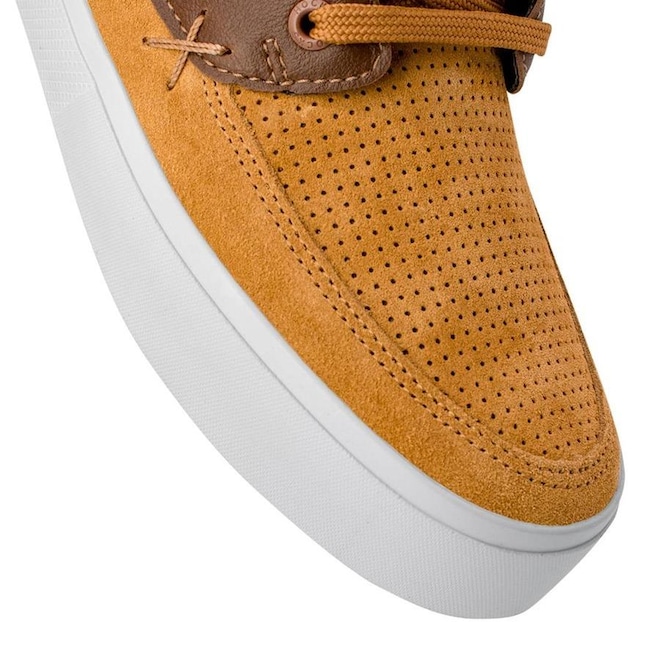Composto por diversos materiais no cabedal, como camurc¸a, couro e sinte´tico de P.U, o conforto e´ garantido pela nossa palmilha de P.U Flex Form, junto da nossa formulac¸a~o de borracha Rubber Soft, que possui maciez e conforto para todas as ocasio~es.