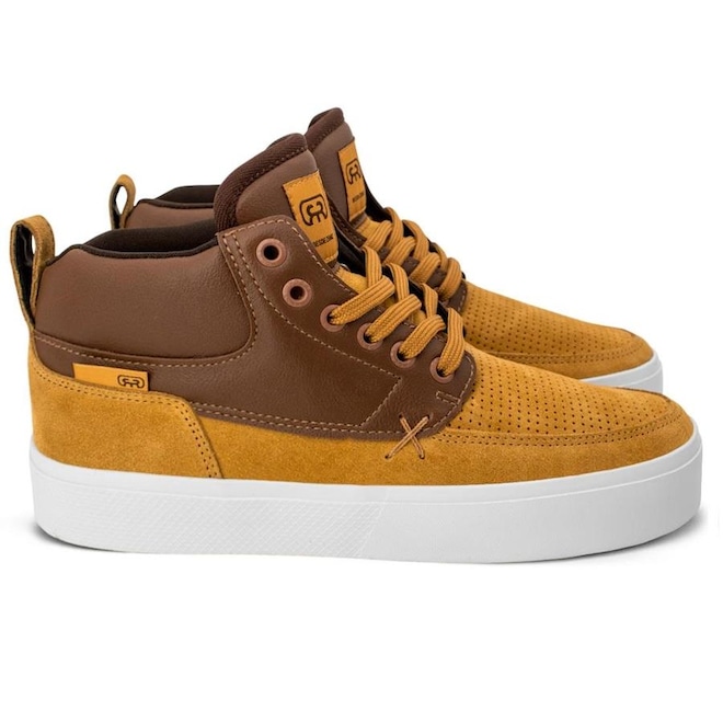 Seu cabedal inspirado nas antigas botinas de trabalho pesado e´ mesclado com seu solado de vira alta em borracha natural que cruza o retro^ com o moderno.