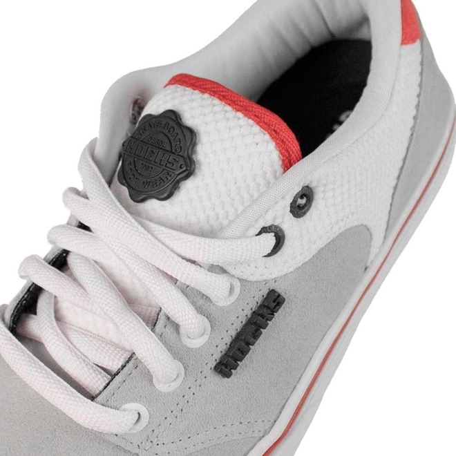 Com variações de material não natural e lona, também possui palmilha de EVA termoconformado e solado de borracha natural com o logo aplicado em etiquetas metálicas.