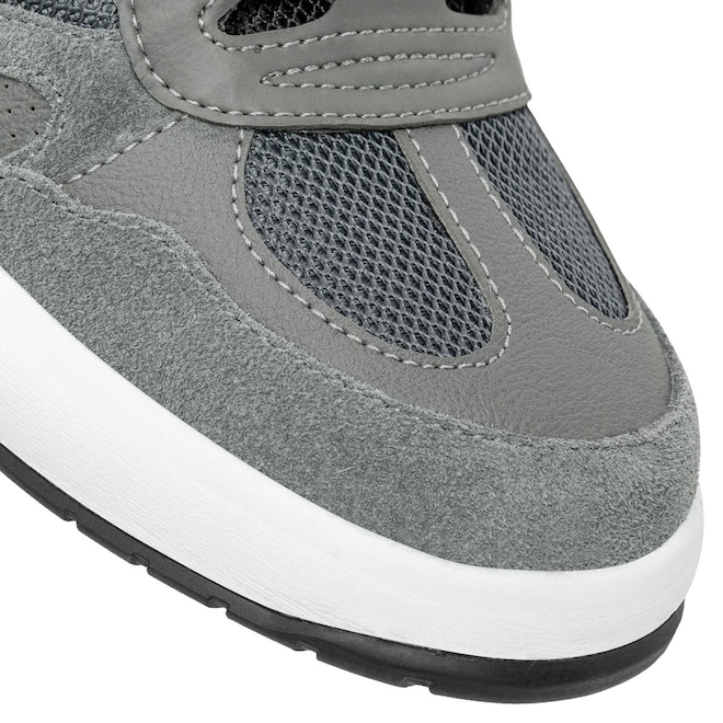 - Cabedal: Em Camurça e nylon poliéster com detalhes refletivos e sobreposições.