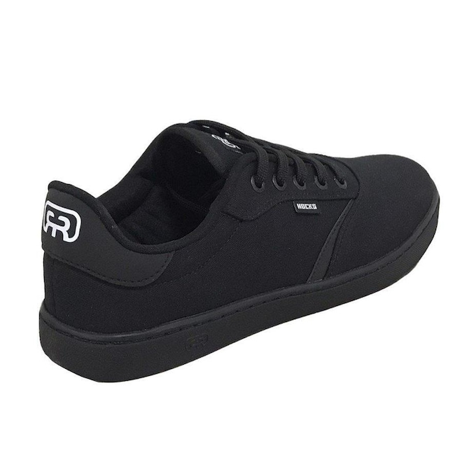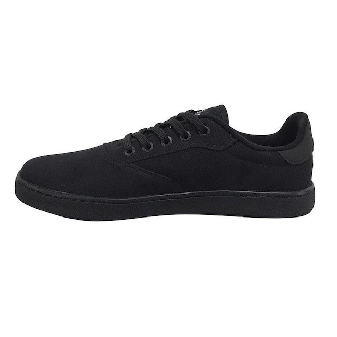 Conta com um cabedal em lona com detalhes em material não natural, com logo aplicado em silk, etiqueta de tecido e palmilha em EVA.