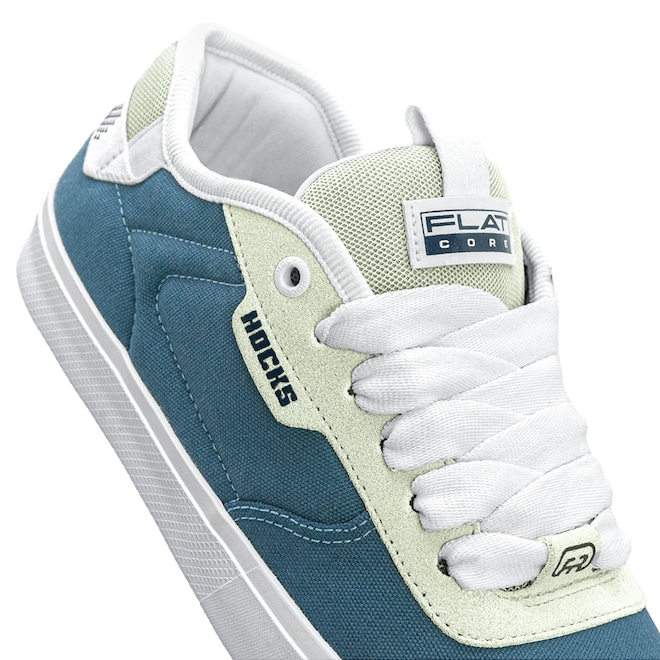 O Tênis Hocks Flat Core Alcalino Azul combina autenticidade e versatilidade em um design moderno e funcional. Inspirado no clássico Flat Lite, este modelo une estética old school com atualizações que garantem maior conforto e resistência. Com cabedal em lona 100% algodão, eco suede e nylon, oferece leveza e durabilidade para acompanhar sua rotina.