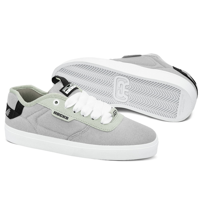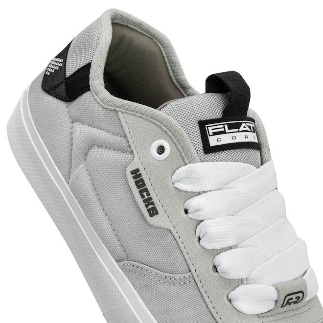 Com cabedal em lona 100% algodão, eco suede e nylon, ele equilibra resistência e leveza, garantindo uma experiência confortável desde o primeiro uso. A nova palmilha em P.U – VITA Form oferece suporte anatômico, tornando esse tênis uma excelente escolha para quem passa longas horas em movimento.O Tênis Hocks Flat Core Cascalho une design atemporal, conforto e segurança para quem busca um tênis versátil e moderno, com detalhes refletivos que fazem a diferença no visual urbano.