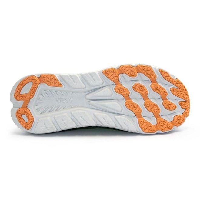 Sua entressola é produzida com o Eva de compressão, uma espuma extremamente leve que oferece o amortecimento exclusivo da Hoka, essa é uma construção Meta-Rocke que permite a rápida aceleração.
