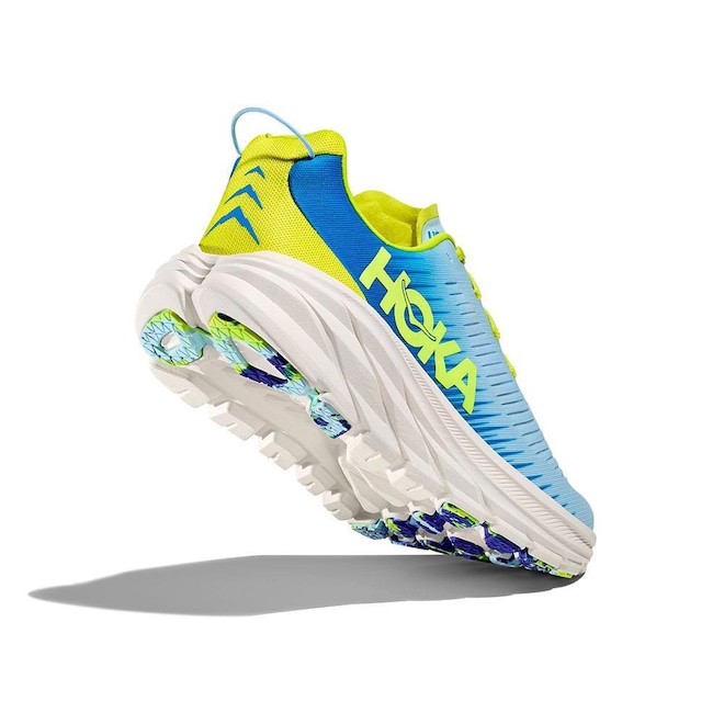 A entressola em EVA Mashmellow Foam é a marca registrada de conforto da Hoka, oferecendo amortecimento na medida certa e tornando os treinos e provas mais suaves e confortáveis. A exclusiva geometria Meta-Rocker permite transições rápidas e dinâmicas, enquanto as zonas estratégicas em borracha DurAbrasion no solado reduzem o peso do tênis sem comprometer sua durabilidade e aderência.