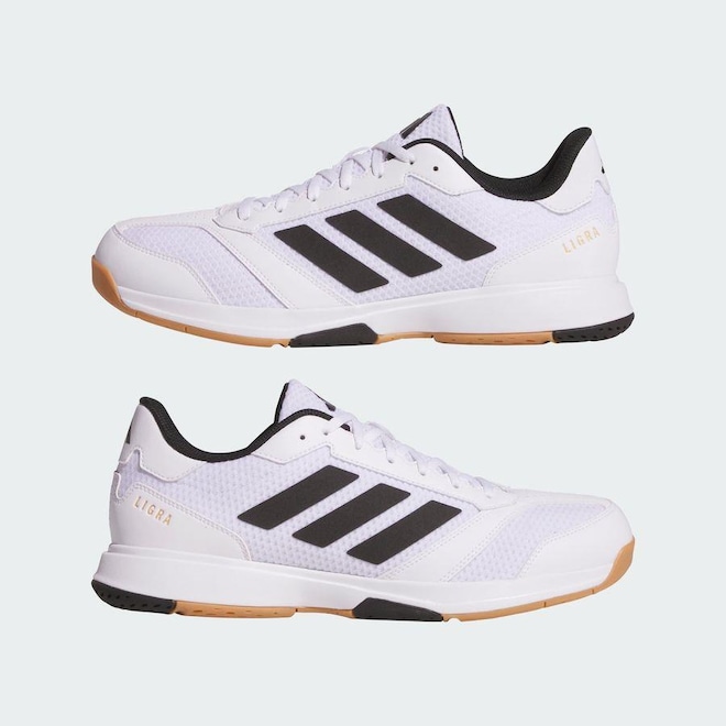 - Sobre o produto - Tênis adidas Indoor Ligra 8 - Masculino- Mude de direção instantaneamente com este tênis indoor adidas. O cabedal sintético e em malha elástica foi desenvolvido para conforto respirável enquanto você domina seus esportes favoritos. Reforçado com a biqueira Adituff, ele mantém você em movimento, não importa o quanto a ação seja intensa. Este produto contém pelo menos 20% de materiais reciclados. Ao escolher o reciclado, podemos reutilizar materiais já criados, o que ajuda a reduzir o desperdício e a nossa dependência de recursos finitos, além de reduzir a pegada dos produtos que fabricamos. - ref: M16ADQ