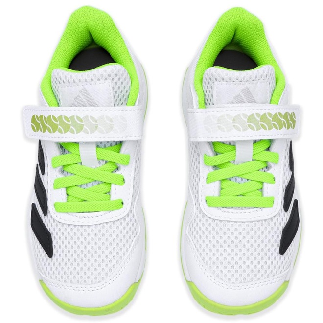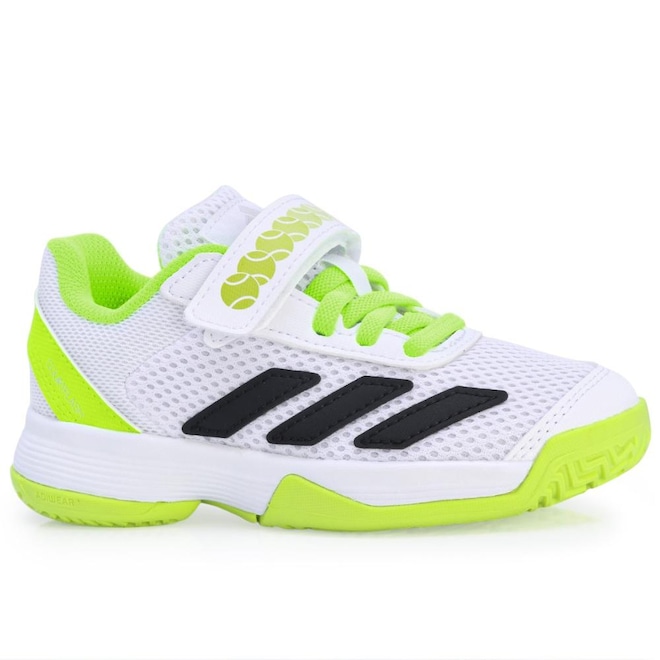 Descrição do Tênis Adidas Courtflash Hook-And-Loop Infantil Branco Preto e Limão