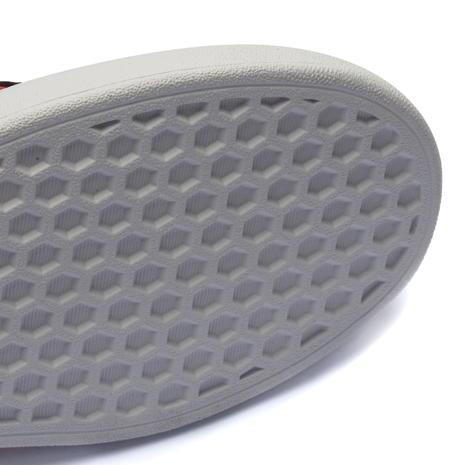 Possui cabedal sintético, entressola e solado emborrachado.