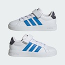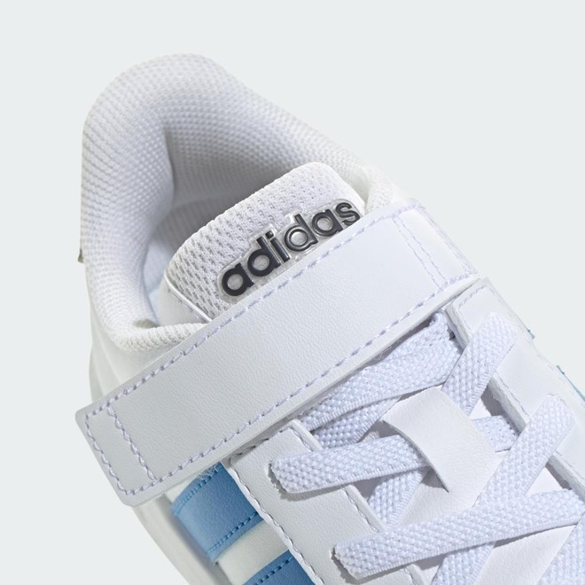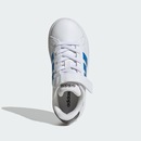 Estes tênis trazem uma atualização moderna para o icônico adidas Grand Court, oferecendo conforto aprimorado em um design que as crianças vão adorar. As brincadeiras continuam divertidas e as corridas escolares são mais rápidas graças aos cadarços elásticos que são fáceis de calçar e de tirar. Uma ponta do pé flexível dá um impulso aos passos dos jovens, com uma tira superior para garantir um ajuste confortável e estável. Os pais apreciarão o cupsole de borracha que não deixa marcas, com a qual você também pode contar para ter aderência e durabilidade. Elegante, porém resistente, estes tênis priorizam o estilo e a funcionalidade. A marca é a assinatura do visual clássico. Os logotipos no solado, no calcanhar e na língua agradarão aos jovens fashionistas, enquanto as Três Listras coloridas nos lembram que estes tênis foram feitos para a diversão.