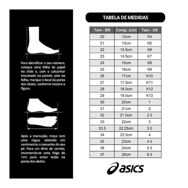 Reforço acolchoadoGarantia do Fornecedor Contra Defeito de Fabricação Conteúdo da Embalagem 1 Par SAC do Fornecedor ASICS: 0800-722-7427 ou através do e-mail fale.conosco@asics.com Tipo de Amarração Velcro