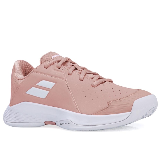 - Detalhamento: Estruturado material sintético possui cinta que garante mais segurança na hora do jogo, fechamento em cadarço, lingueta macia e acolchoada com escrita Propulse JR, solado que não marca o solo, logo Michelin na lateral do solado, biqueira reforçada, reforço em borracha ultra resistente que protege da parte interna do antepé até os dedos, garantindo máxima durabilidade. Logo Babolat nas laterais e escrita Babolat no calcanhar. Design moderno;