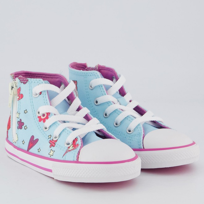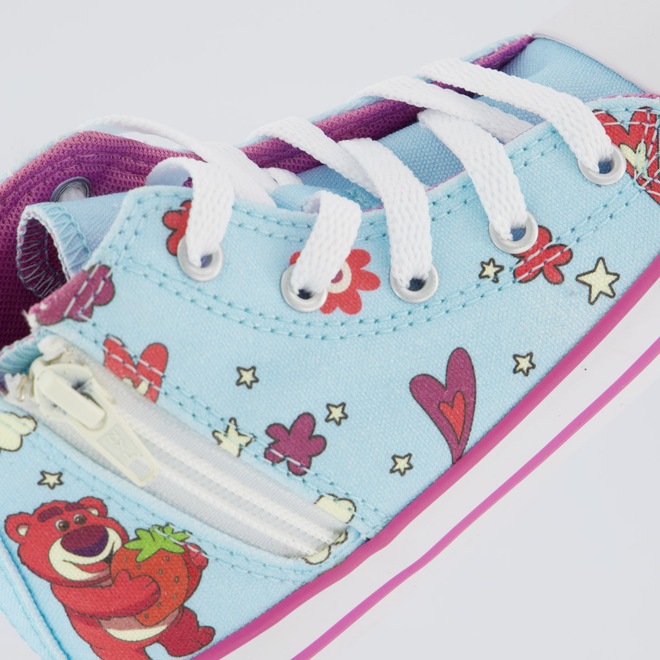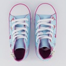 Composição cabedal (parte superior): Material têxtil Palmilha: Em EVA e removível; facilita na higienização Solado: Borracha antiderrapante, colado Altura da sola: 3cm Forro: Material têxtil respirável Cor predominante: Azul Lingueta: Fina e flexível Indicado para: Casual Origem: Nacional Ajuste: Cadarço Idade: Juvenil Cano: Alto Peso aproximado: 300g o par n°25 Obs: Este calçado apresenta formato grande, dessa forma é indicado que você opte por um tamanho menor.