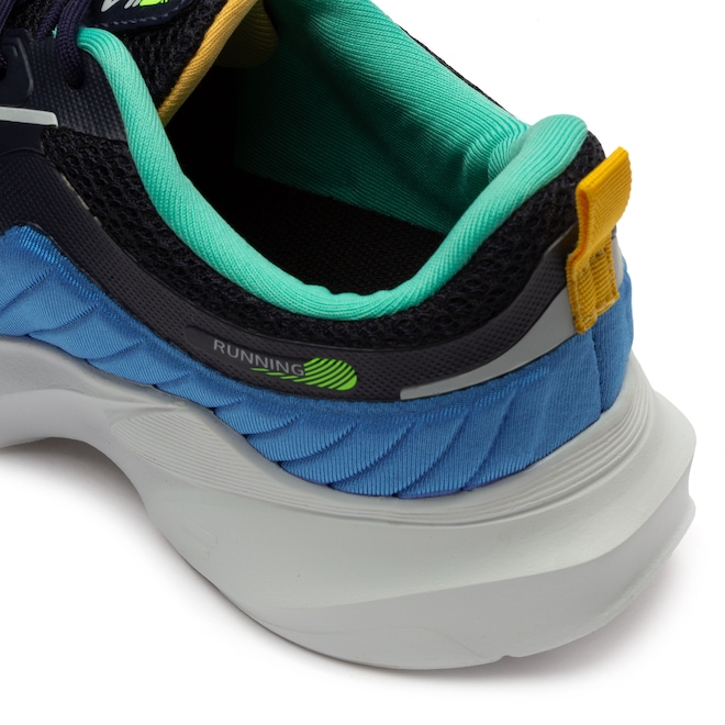 Mesh (Fibras em Malha com Tramas Abertas)Entressola EVA Solado Leve, com cortes profundos para flexibilidade Lingueta Fina