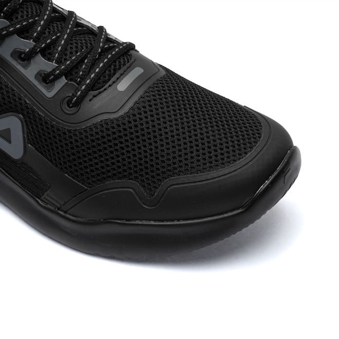 A lingueta é flexível, palmilha removível e forro com reforço acolchoado.