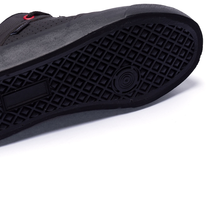 Já a entressola é plana com tira emborrachada em toda a extensão, além de solado que oferece aderência e agilidade nos movimentos.