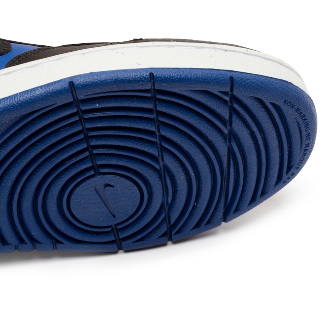 Seu design inspirado no basquete apresenta o solado com a tecnologia non-marking, que evita marcas indesejadas em pisos, garantindo segurança e versatilidade.