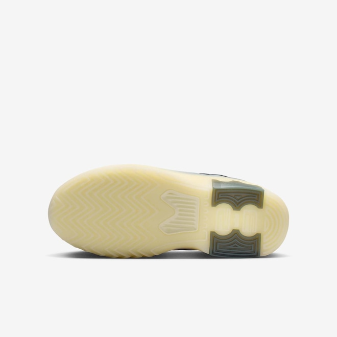 O solado é feito de um composto de borracha que proporciona suporte lateral ideal tanto em ambientes internos quanto externos. Ele se estende da ponta do pé até o calcanhar para maior durabilidade.