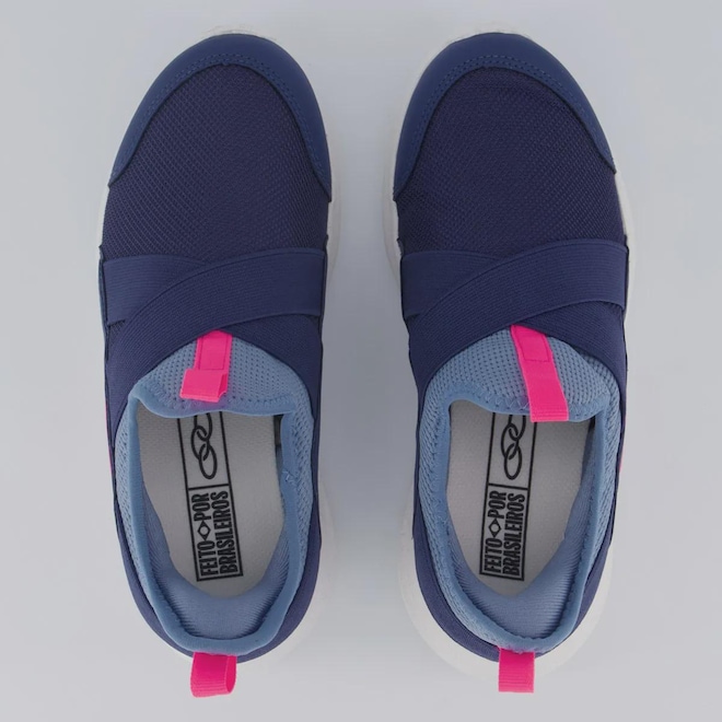 Tecnologia EVAsense: EVA macio e expandido que proporciona mais conforto, flexibilidade e leveza à pisada. Composição cabedal (parte superior): Confeccionado em têxtil com partes em sintético Forro: Revestimento em material têxtil com acolchoamento reforçado Palmilha: EVA forrada e removível; facilita na higienização Solado: EVA resistente e antiderrapante Entressola: EVA leve e macio Cor predominante: Marinho Ajuste: Faixas elásticas Indicado para: Casual Lingueta: Integrada Origem: Nacional Gênero: Unissex Idade: Juvenil Peso aproximado: 370g o par n° 33