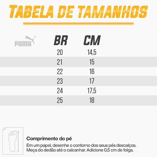 Estampado na LinguetaGarantia do Fornecedor Contra Defeito de Fabricação Conteúdo da Embalagem 1 Par SAC do Fornecedor PUMA: (11) 2135-9999