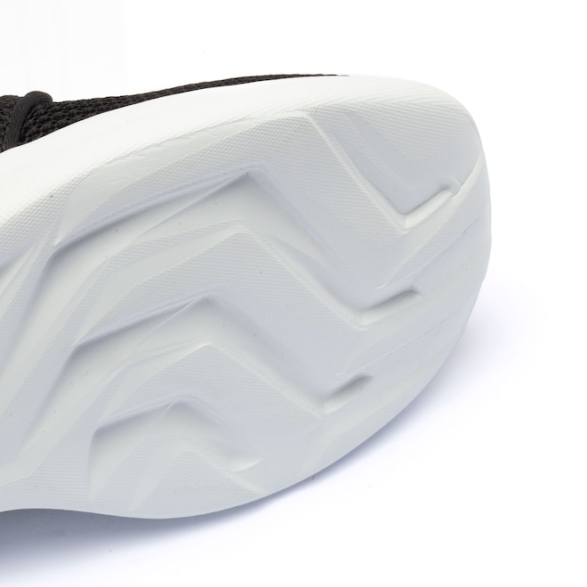 O cabedal possui a leveza e respirabilidade do mesh com lingueta integrada para mais suporte e passante em tecido para facilitar o calce.