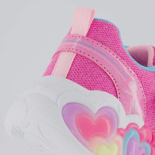Tecnologias Non-Marking: Não deixa marcas ou riscos no chão, garantindo aderência, durabilidade e preservando o piso sem manchas. S-Lights: Sistema de luzes LED coloridas integradas ao solado em formato de corações que brilham e piscam a cada passo. On/Off Light Switch: Botão estrategicamente posicionado que permite ligar ou desligar as luzes, ideal para momentos em que o brilho não é necessário. Composição cabedal (parte superior): Confeccionado em material têxtil Palmilha: EVA forrado e removível; facilita na higienização Forro: Material têxtil com acolchoamento reforçado Solado: Emborrachado, colado com 4cm Lingueta: Macia e acolchoada Cor predominante: Rosa Indicado para: Casual Ajuste: Fecho fixado Origem: Importada Gênero: Feminino Idade: Infantil Peso aproximado: 330g o par nº 28