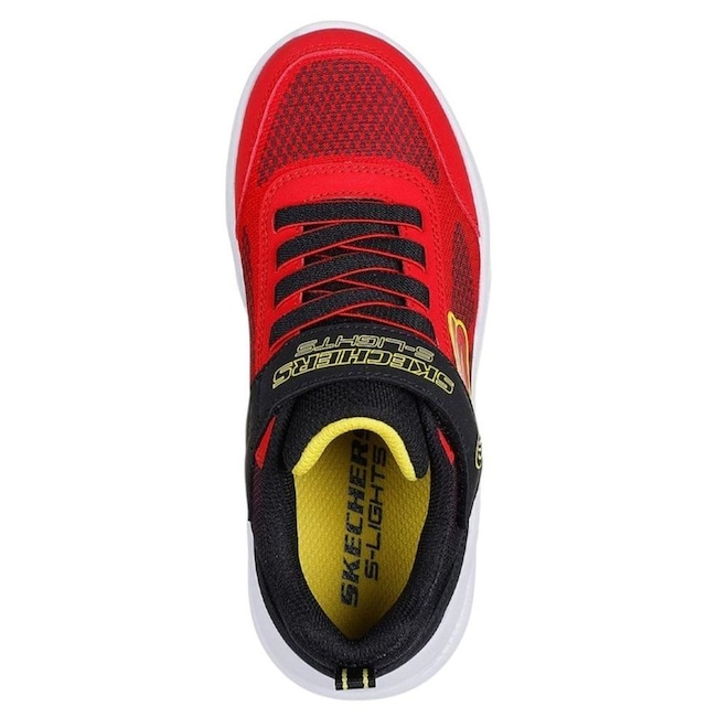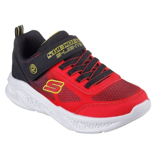 O Tênis Skechers Meteor Lights Krendo Juvenil une estilo e diversão com luzes LED na entressola que brilham a cada passo. Conta com cabedal em malha respirável e sintético, ajuste com cadarços elásticos e tira aderente, além de palmilha acolchoada e sola flexível que oferecem conforto e segurança nas atividades do dia a dia.