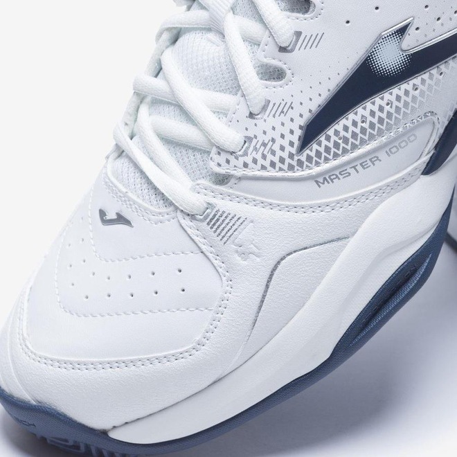 O Tênis Joma Master 1000 possui um cabedal em Fibertec que proporciona resistência e estabilidade, o corpo do calçado conta com pontos em nylon e perfurações ao redor do pé que aumentam a respirabilidade do produto. Palmilha em EVA de 2mm que se ajusta ao pé, entressola em peça única de phylon que promove melhor amortecimento e solado resistente a abrasividade. O Master 1000 é o calçado ideal para iniciantes e para os amantes de um modelo mais tradicional.