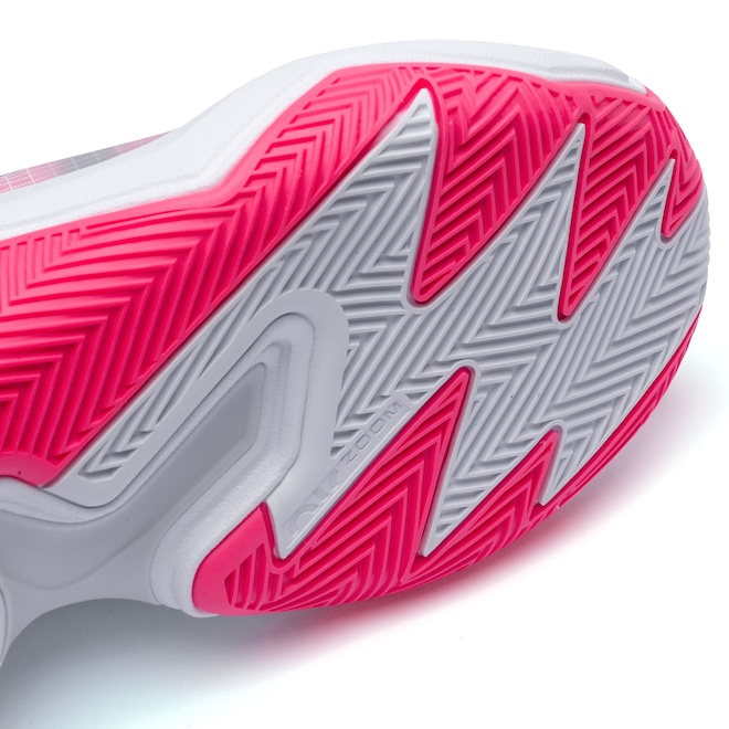 Já a entressola apresenta a tecnologia Nike Zoom Air: Permite resposta rápida de movimentos com mais leveza, oferecendo proteção contra impactos, maior estabilidade e sensação de baixo perfil. O solado em borracha de alta aderência, oferece tração excepcional em superfícies variadas.