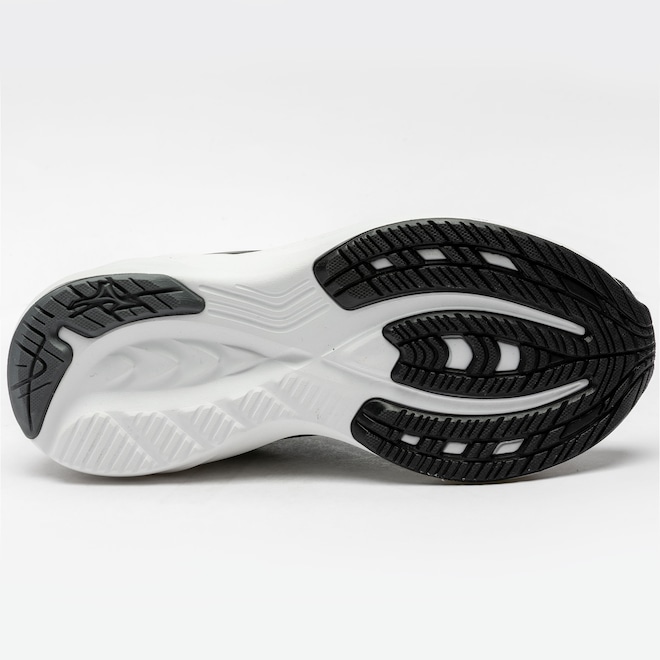 A entressola com SOFTIERFOAM absorve o impacto, enquanto o solado em borracha oferece aderência e durabilidade.