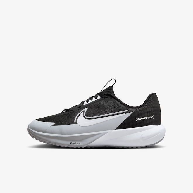 Leve, elástico e estável, o Nike Sonic Fly é a escolha ideal para os pequenos corredores que querem acelerar sem perder o conforto.