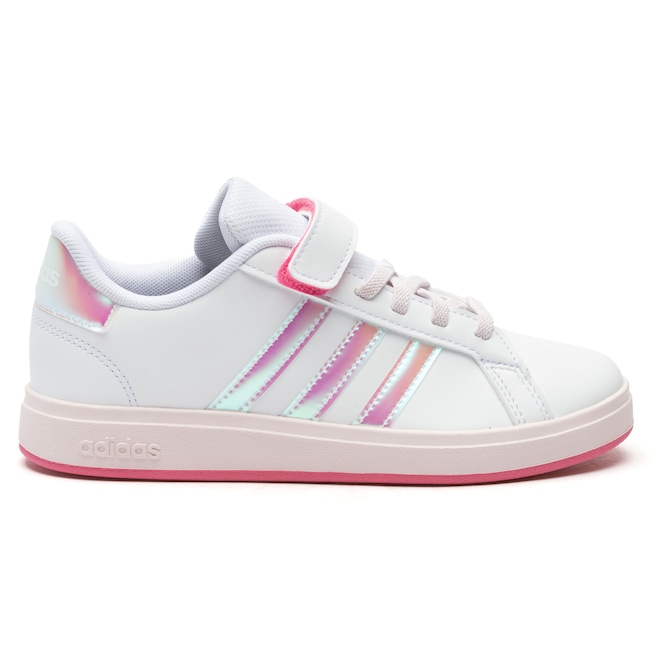 O adidas Grand Court 2.0 traz visual clássico com fechamento prático de cadarço e tira em velcro, ideal para facilitar o calce e garantir segurança durante o uso.
