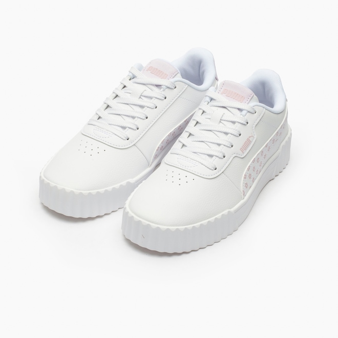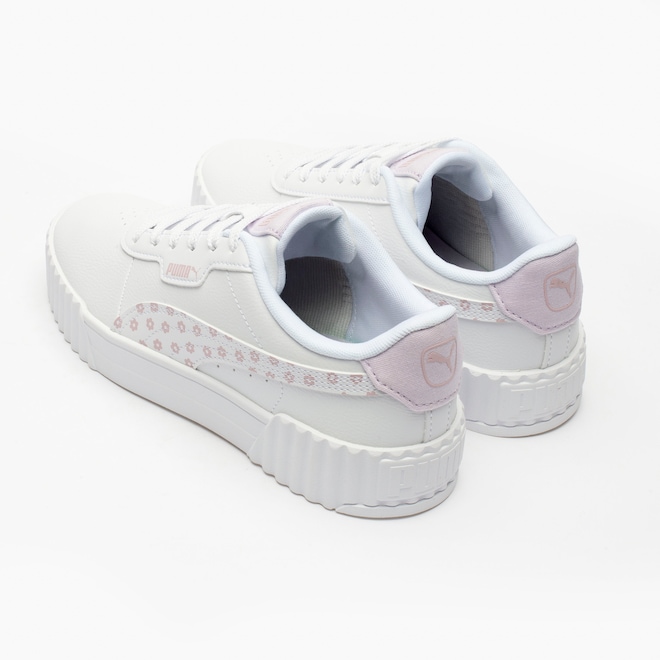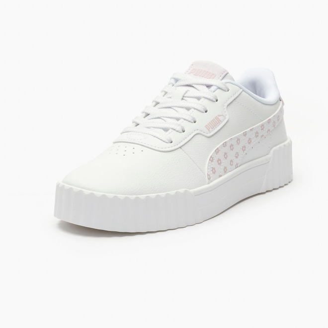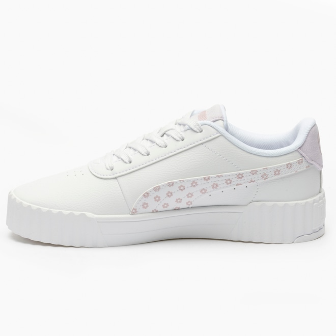A lingueta macia e acolchoada, junto à palmilha forrada e forro têxtil, proporciona uma sensação inigualável de aconchego. A entressola com tira emborrachada adiciona um toque extra de estilo e resistência. Com amarração em cadarço para um ajuste perfeito, o Carina 3.0 Beach Florals é a escolha ideal para o dia a dia ou momentos de lazer. Não perca a chance de calçar moda e conforto. Adquira agora e garanta o estilo Puma que ela vai amar!