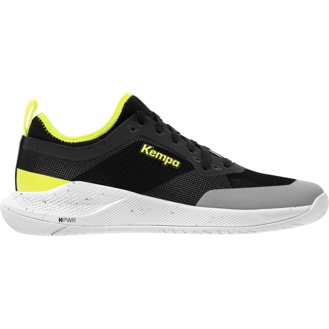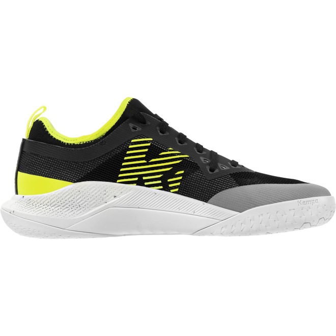 O formato ergonômico da área do calcanhar é adaptado ao seu comportamento natural de rolamento, permitindo que o calçado transfira sua potência idealmente para o piso da quadra.