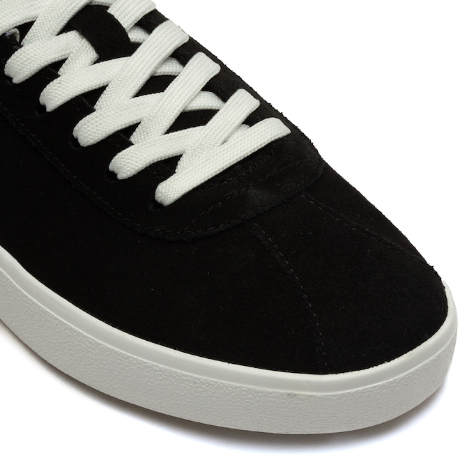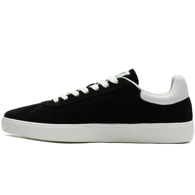 O cabedal em camurça oferece resistência e um toque sofisticado, enquanto a entressola com tira emborrachada proporciona amortecimento eficiente para maior conforto nas passadas. Para tração e durabilidade, o solado em borracha garante estabilidade em diversas superfícies.