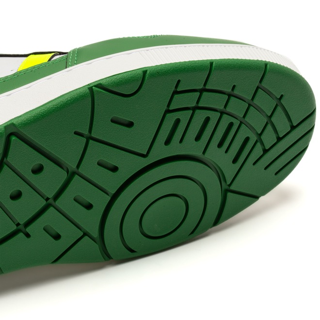 A entressola e solado emborrachados que oferecem aderência e estabilidade em todas as superfícies.