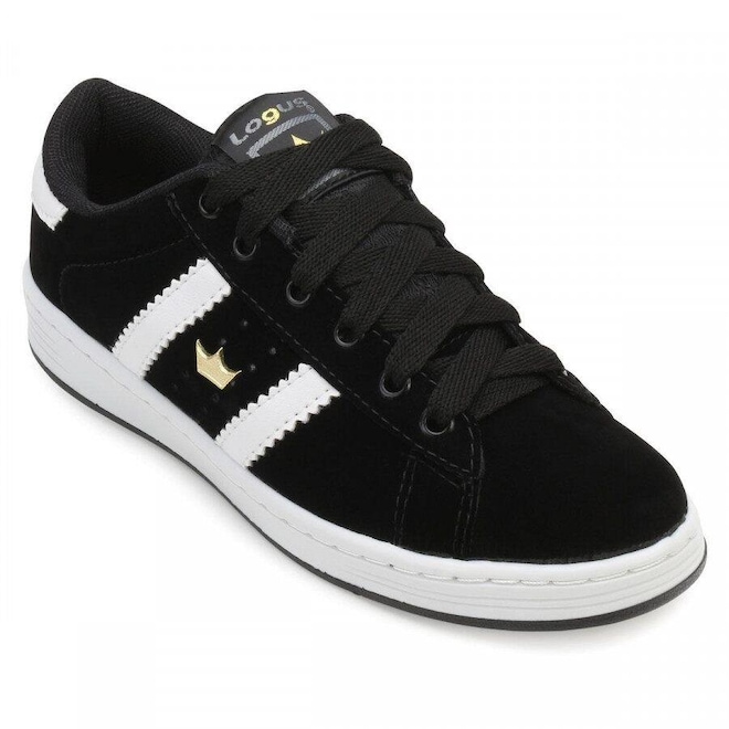 Tênis Logus Street LG18-19520 Indicação: Street/Casual Perfil: O Tênis Logus Street LG18-19520 tem o cabedal em material sintético com recortes bicolor, perfuros e coroa dourada nas laterais.Com ajuste em cadarço, forro interno acolchoado.