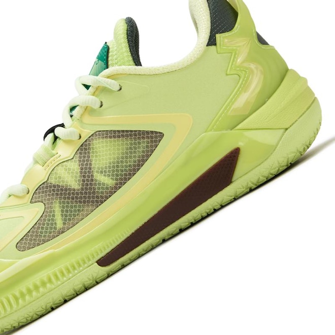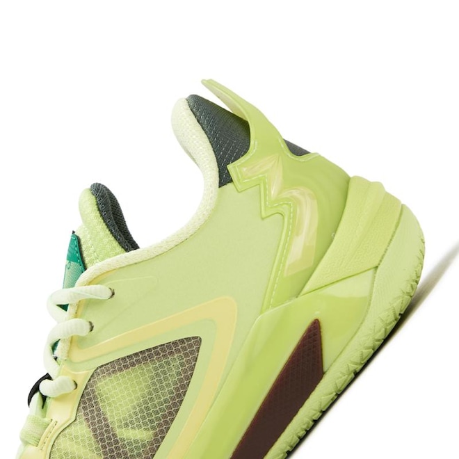 A estrutura em TPU no calcanhar oferece suporte firme e estabilidade extra nos giros, saltos e mudanças bruscas de direção.