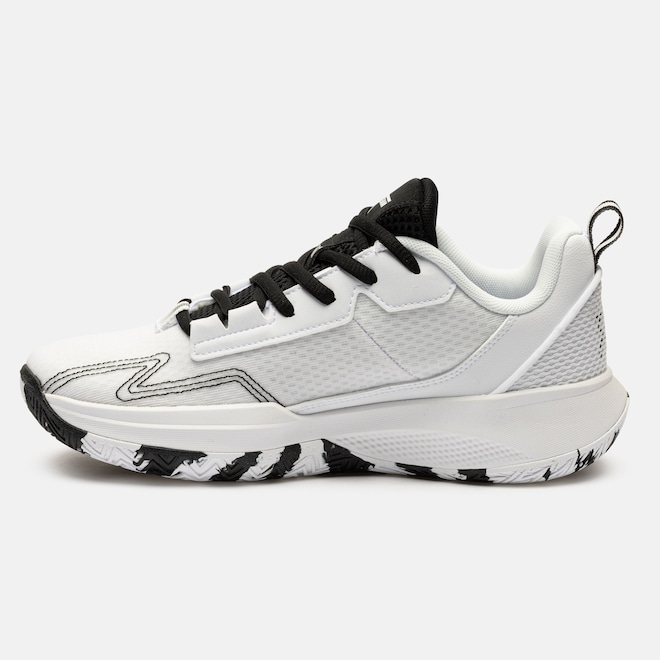 A entressola com tecnologia QU!KFOAM Lite oferece amortecimento eficiente e excelente retorno de energia, garantindo suporte constante durante o jogo.
