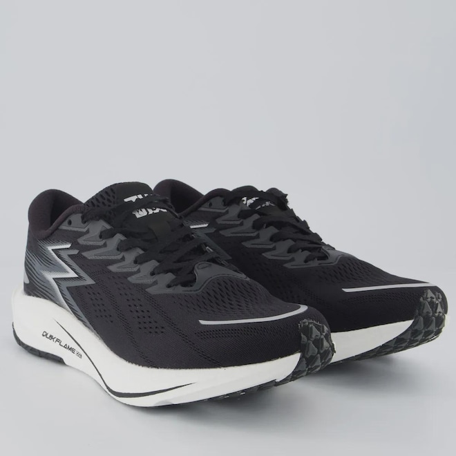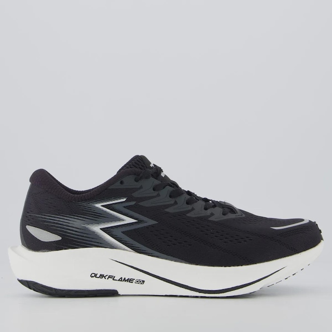 TecnologiasQU!KCQTech (Carbon Qu!ktical Tech): Entressola com espuma de ETPU de alta performance, leve e super resiliente, feita com carbono reciclado em processo de espumação supercrítica. Garante excelente absorção de impacto, retorno de energia e menor pegada ambiental.QUIKBONE: Estrutura interna de suporte que favorece a estabilidade e otimiza a transição da passada, proporcionando maior controle e impulso.CQT EXTREM3: Amortecimento extremo e resposta imediata, pensada para corredores de alta performance que exigem máxima eficiência energética.Composição cabedal (parte superior): Material têxtil e sintéticoPalmilha: EVA e removível; facilita no momento da higienizaçãoForro: Revestimento em material têxtil respirávelSolado: Borracha com função antiderrapante, coladoAltura da sola: 4cmEntressola: EVA leve e resistenteLingueta: Fina e flexívelCor predominante: PretaIndicado para: Corrida (ideal para corridas curtas, treinos de pista e competições explosivas)Origem: ImportadaAjuste: CadarçoGênero: MasculinoPeso aproximado: 470g o par nº 40