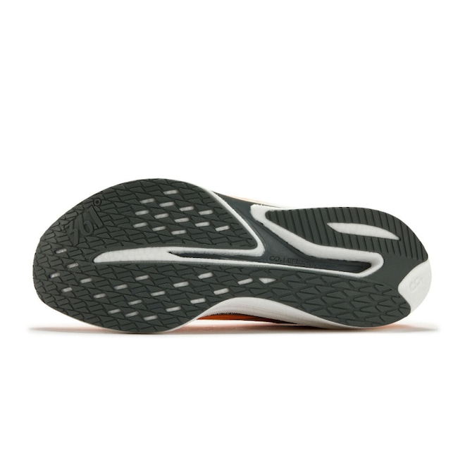 A entressola é feita com material ETPU elástico de alta performance e carbono reciclado, por meio de um processo de espumação supercrítica. O resultado é um amortecimento leve, durável e com até 75% de resiliência, que contribui para a neutralidade de carbono.