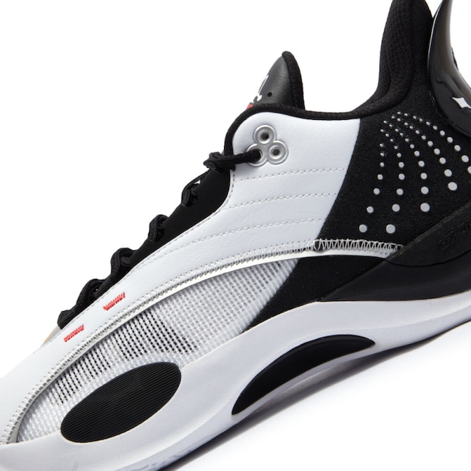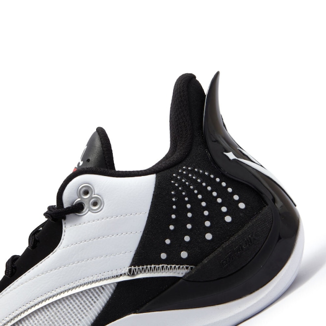Um grande TPU em volta do calcanhar proporciona estabilidade e firmeza em cortes laterais e mudanças bruscas de direção. O design é finalizado com uma coroa icônica de Jokić no calcanhar, reforçando a personalidade do modelo.