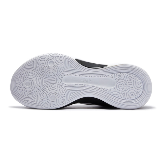 O modelo conta com uma placa de fibra de vidro e nylon embutida na entressola, que melhora a transmissão de força, garantindo impulsão rápida e maior controle em movimentos explosivos.