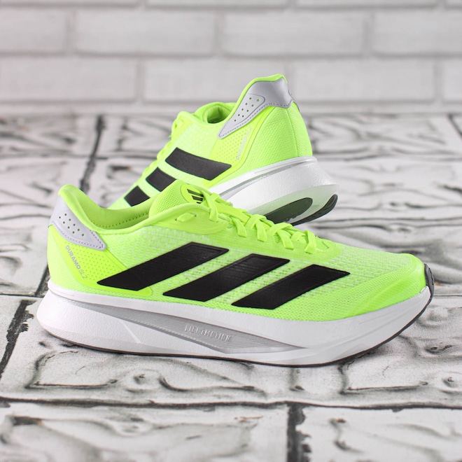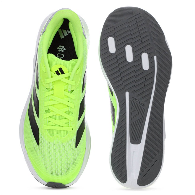 Leveza e estabilidade para suas corridas de curta e média distância! Tênis Adidas Duramo SL2 Verde Neon e Preto - Masculino Ficha Técnica: Marca: Adidas Gênero: Masculino Cor: verde neon com detalhes em preto e cinza Forma: Padrão Fecho: Cadarço Indicado: Corrida Drop: 9mm - drop de ponta a ponta 33mm / 24mm Cabedal: Malha elástica sintética e têxtil Entressola: LIGHTMOTION Solado: Borracha Adiwear Forro: Sintético e têxtil Amortecimento: Leve e responsivo com tecnologia LIGHTMOTION Estabilidade: Neutro Tecnologias: LIGHTMOTION, amortecimento leve e flexível e solado Adiwear, para mais durabilidade Detalhes: Design respirável com ajuste confortável e firme; Icônicas três listras nas laterias Alcance seu melhor desempenho com o Adidas Duramo SL2. Ideal para quem está iniciando nas corridas ou focando em treinos diários, ele traz a tecnologia LIGHTMOTION que proporciona amortecimento leve e responsivo. Por que investir: O cabedal em malha elástica garante respirabilidade e adaptação ao formato do pé, enquanto o solado Adiwear oferece tração segura em diferentes superfícies. Perfeito para transformar cada treino em evolução. Conteúdo da embalagem: 1 par de Tênis Adidas Duramo SL2 Verde Neon e Preto - Masculino