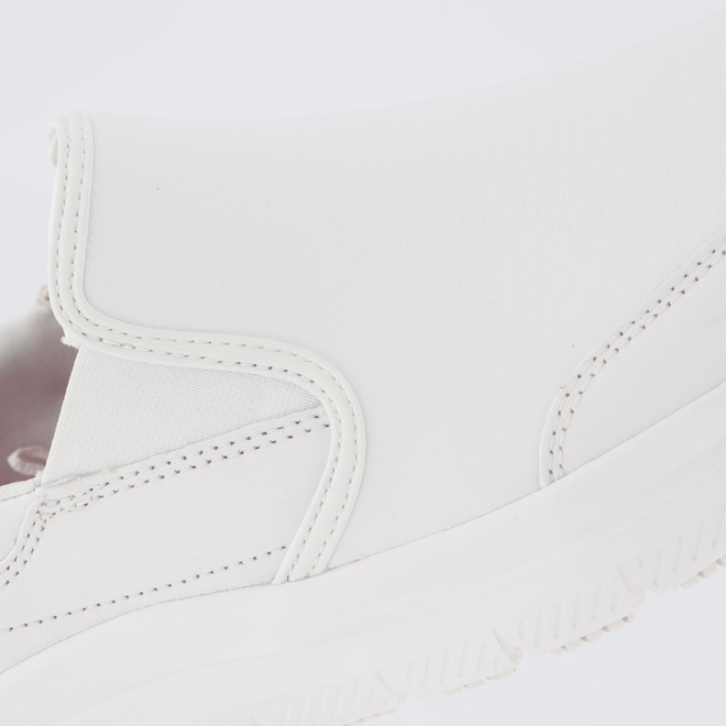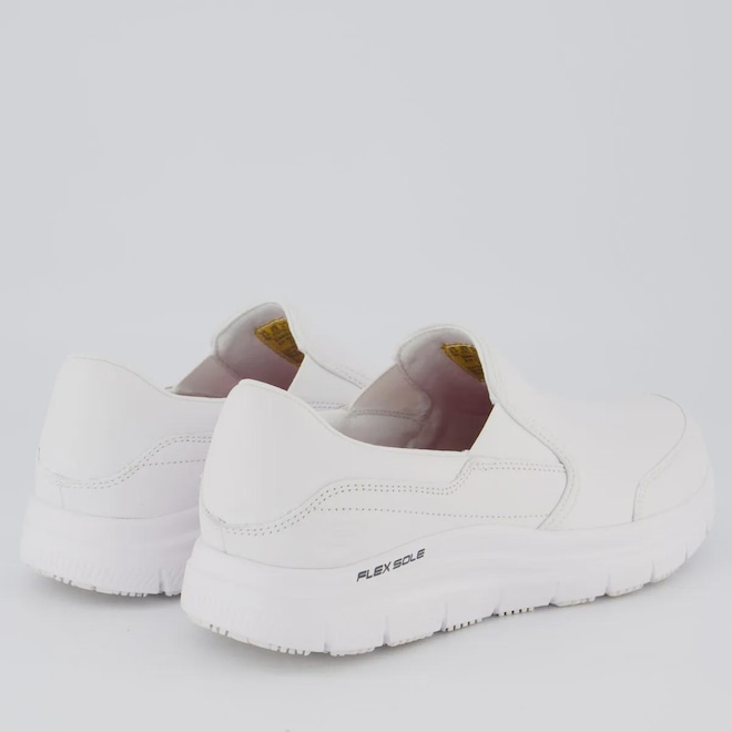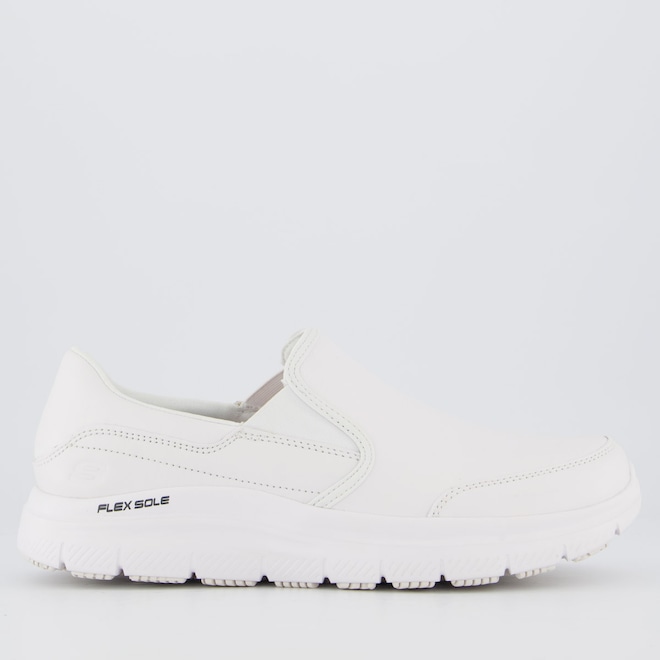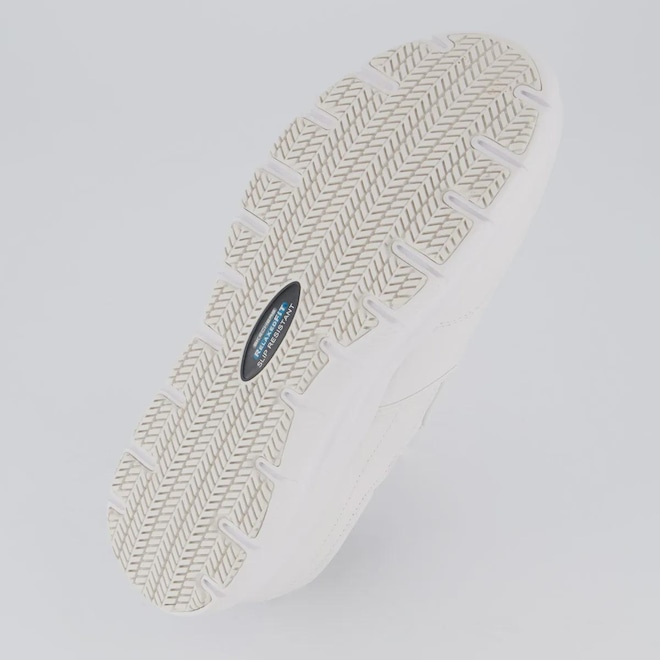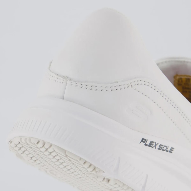 Tecnologia Slip Resistant: sola antiderrapante (não escorrega). Work: tênis feito para trabalho e uso por muitas horas. Memory Foam: palmilha macia que se molda ao pé. Relaxed Fit: mais espaço na frente do pé (mais confortável). Flex Sole: sola flexível e leve, ajuda a caminhar melhor. Composição cabedal (parte superior): Couro Palmilha: Em EVA, moldada e fixada Solado: Borracha resistente e antiderrapante Forro: Material têxtil respirável Cor predominante: Branca Indicado para: Casual Altura da sola: 4 cm Lingueta: Integrada Origem: Importada Gênero: Masculino Ajuste: Elástico Peso aproximado: 660g par nº 40