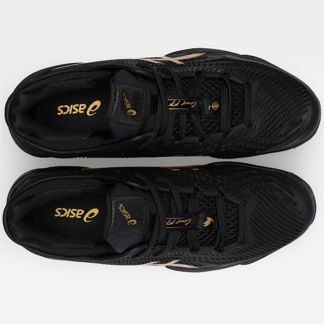 Inspirado na força dos grandes torneios, o Tênis ASICS Court FF 3 Novak Clay Night Energy foi feito para oferecer controle e velocidade em quadras de saibro.