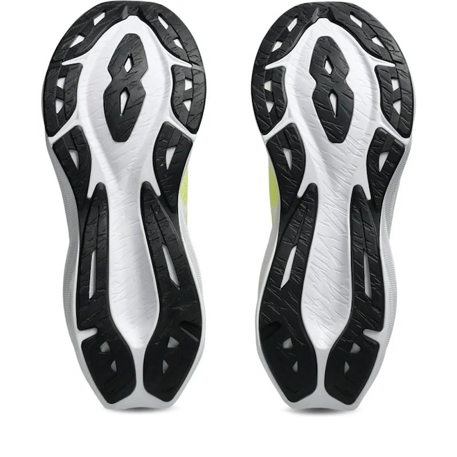 O design do solado, inspirado em trampolim, amplia a sensação de propulsão, mas sem o uso de placa rígida, o que proporciona uma passada mais natural e flexível.