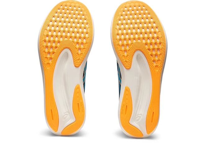 Os principais ajustes na entressola incluem o amortecimento FF BLAST™. Este material macio ajuda a promover aterrissagens mais suaves e um rebote responsivo. Por fim, o material de borracha AHAR™ da sola oferece melhor aderência em diversas superfícies.