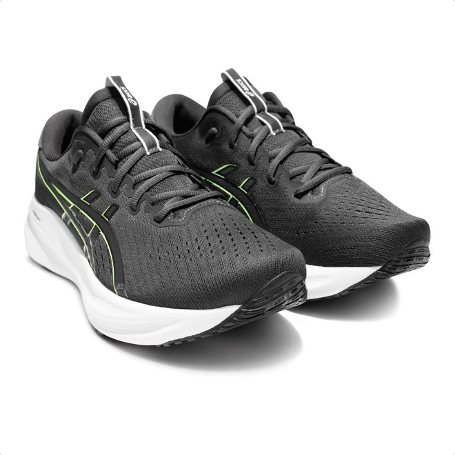 A tecnologia GEL no calcanhar absorve impactos e proporciona aterrissagens mais leves, enquanto a sola de borracha sólida oferece excelente tração, durabilidade e flexibilidade para passadas mais naturais.