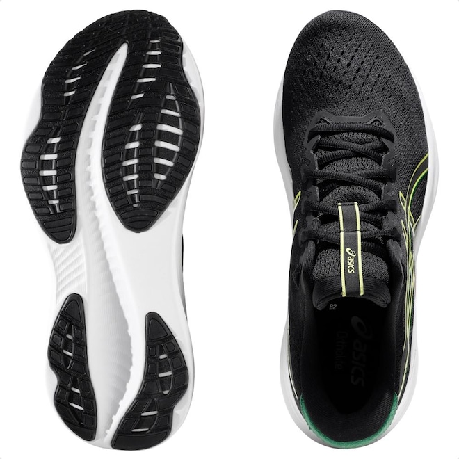A tecnologia GEL no calcanhar absorve impactos e proporciona aterrissagens mais leves, enquanto a sola de borracha sólida oferece excelente tração, durabilidade e flexibilidade para passadas mais naturais.